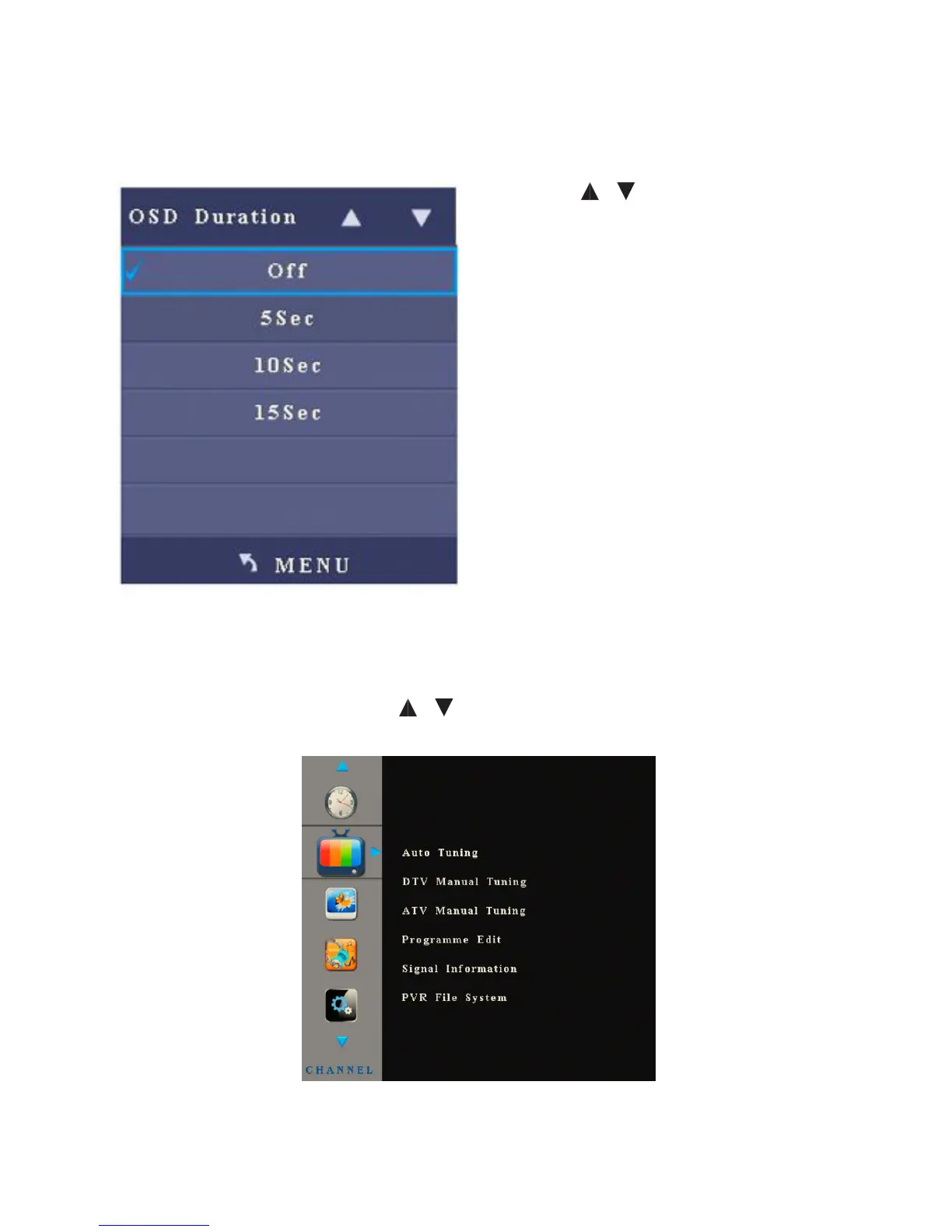 Note: The Channel menu is only eective when the signal source is TV.