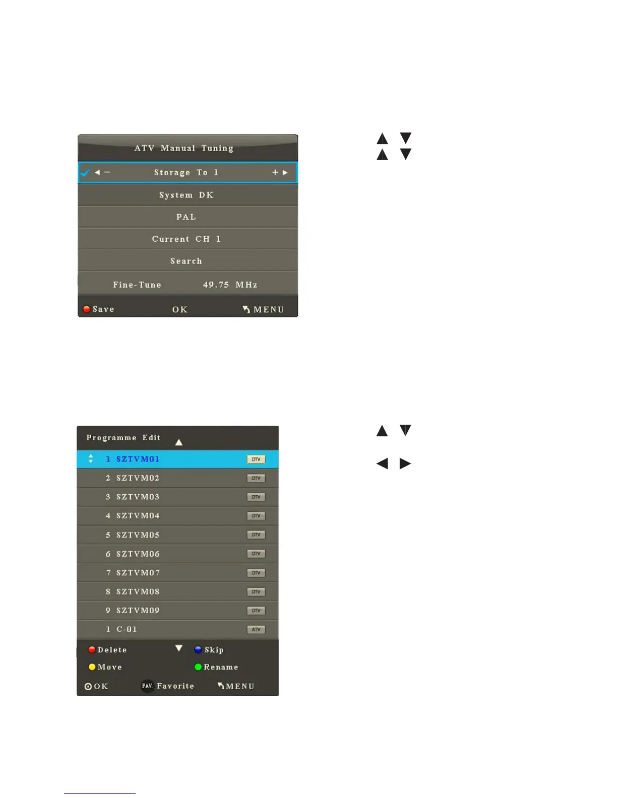 After you enter the Analogue Manual Search sub-menu, the interface shows
