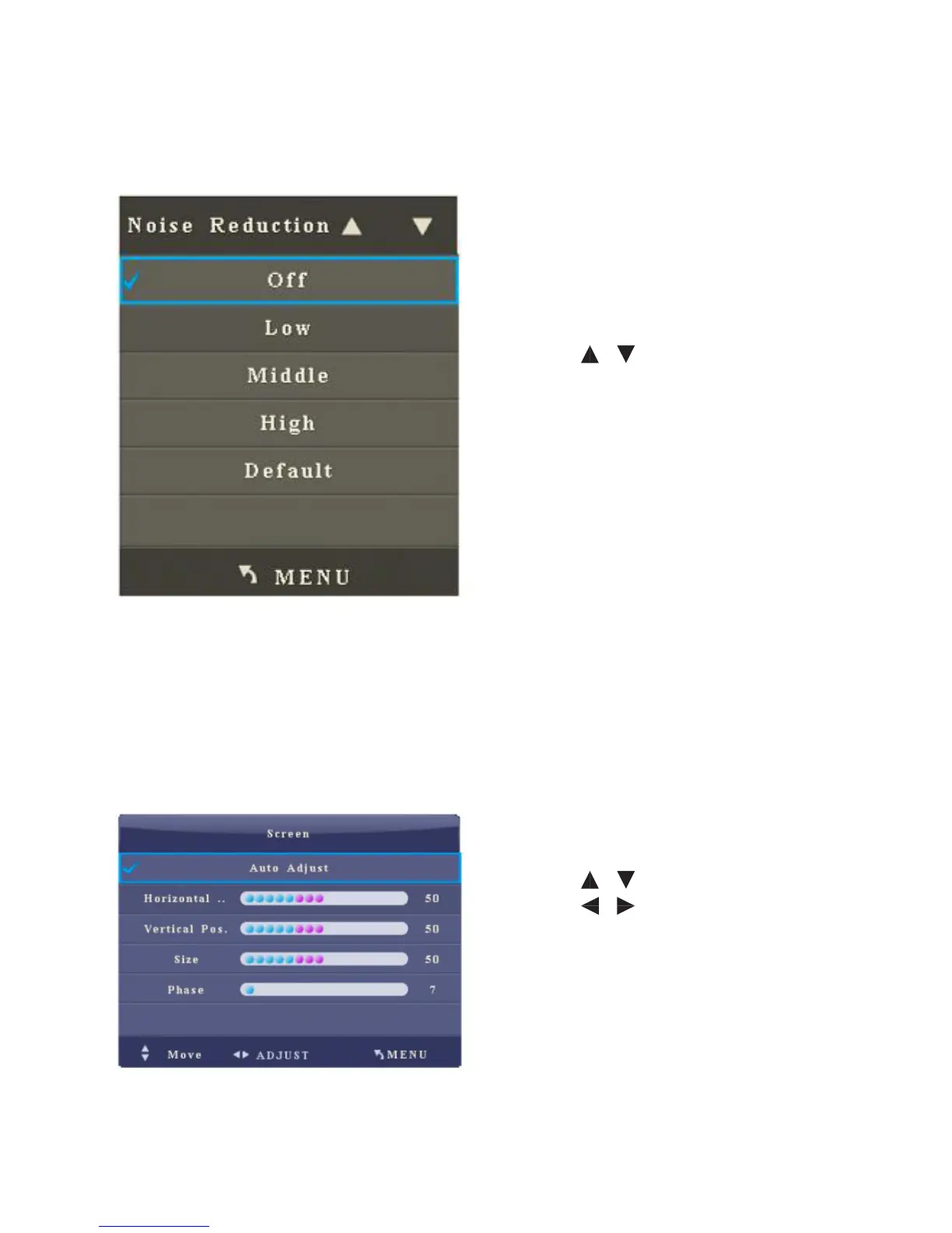 Auto ADJ, Line Position, Field Position, Size and Phase. When Auto ADJ is selected,