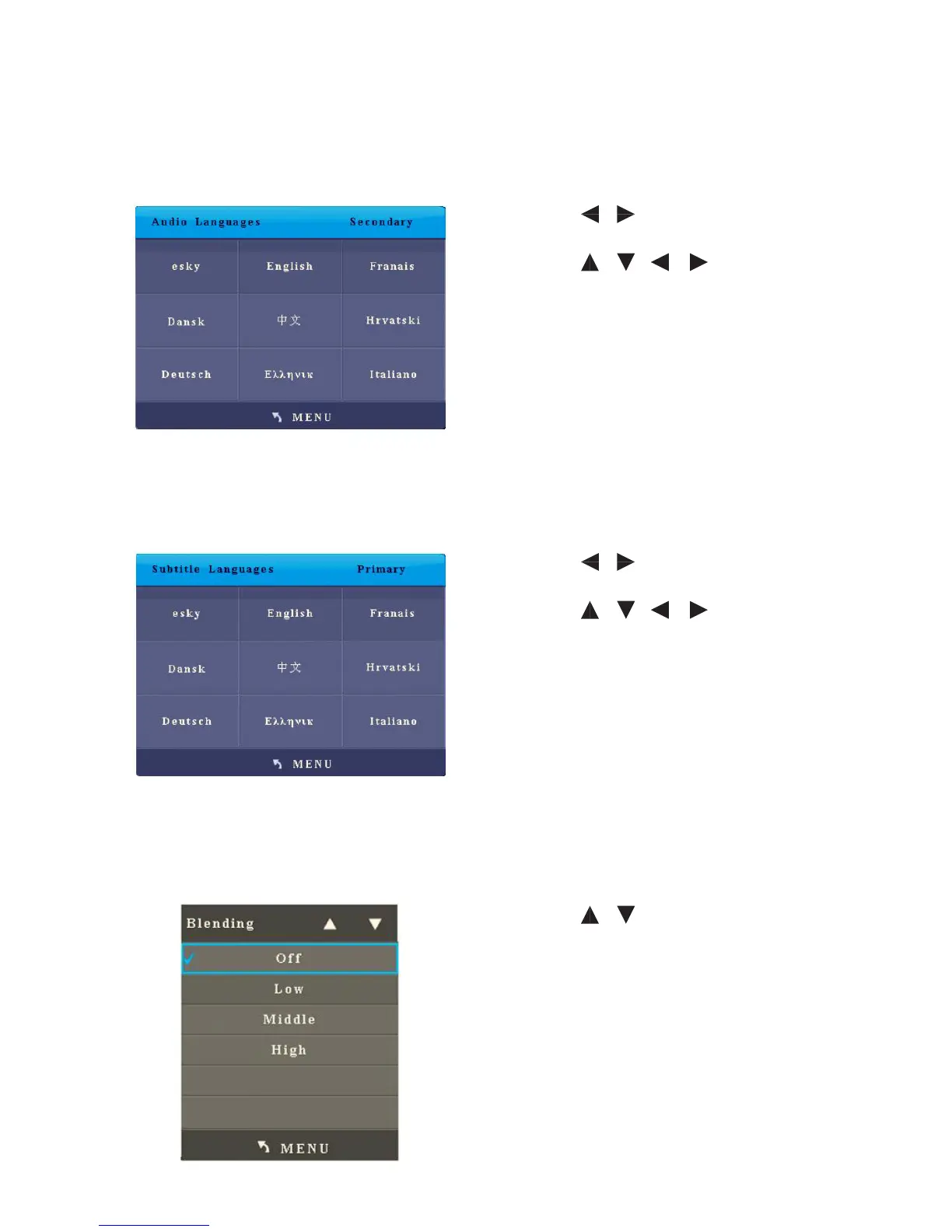 After you enter the Audio Language sub-menu, the interface shows options