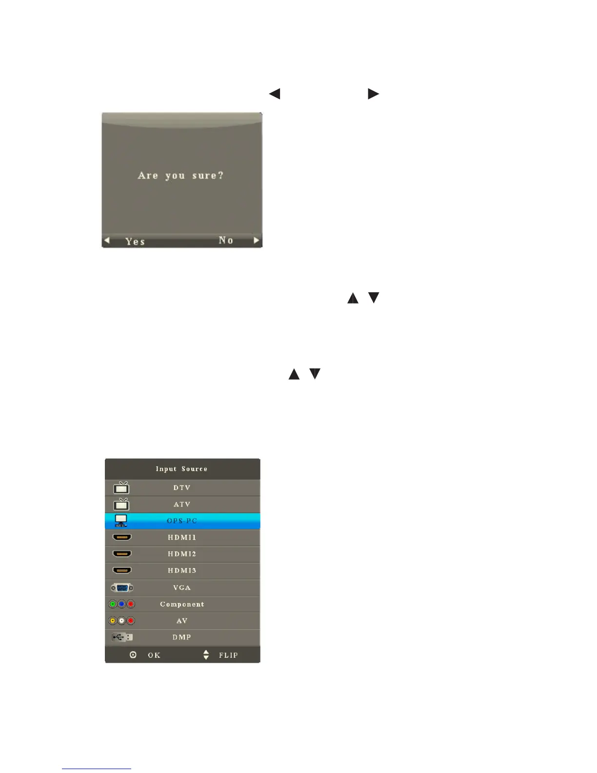 After you enter the Restore to Factory Defualt sub-menu, the interface shows