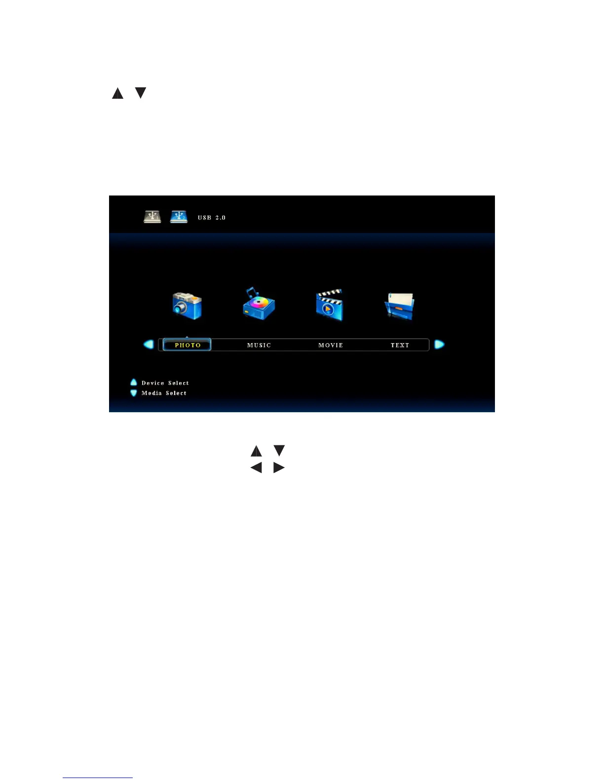 Press / to switch to Multi-Media signal channel. Press OK to enter the