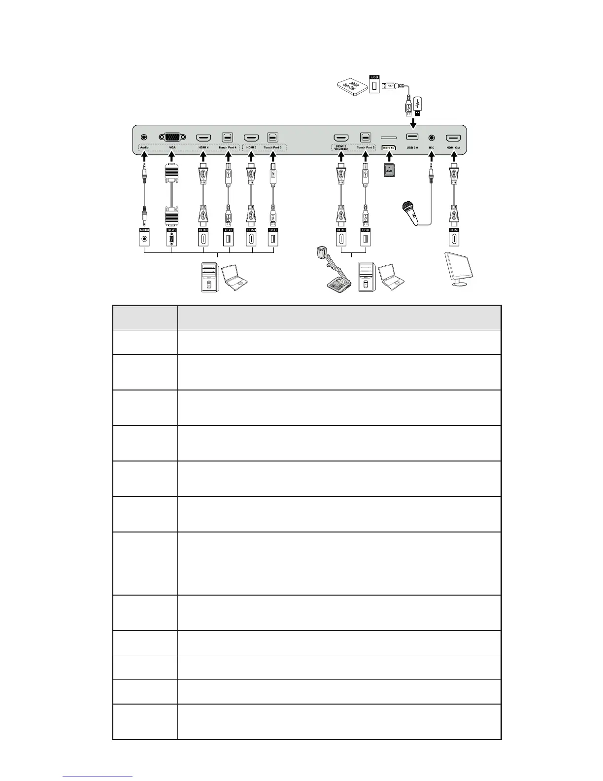 Note: Connect a visualiser for touch display control function and HD display