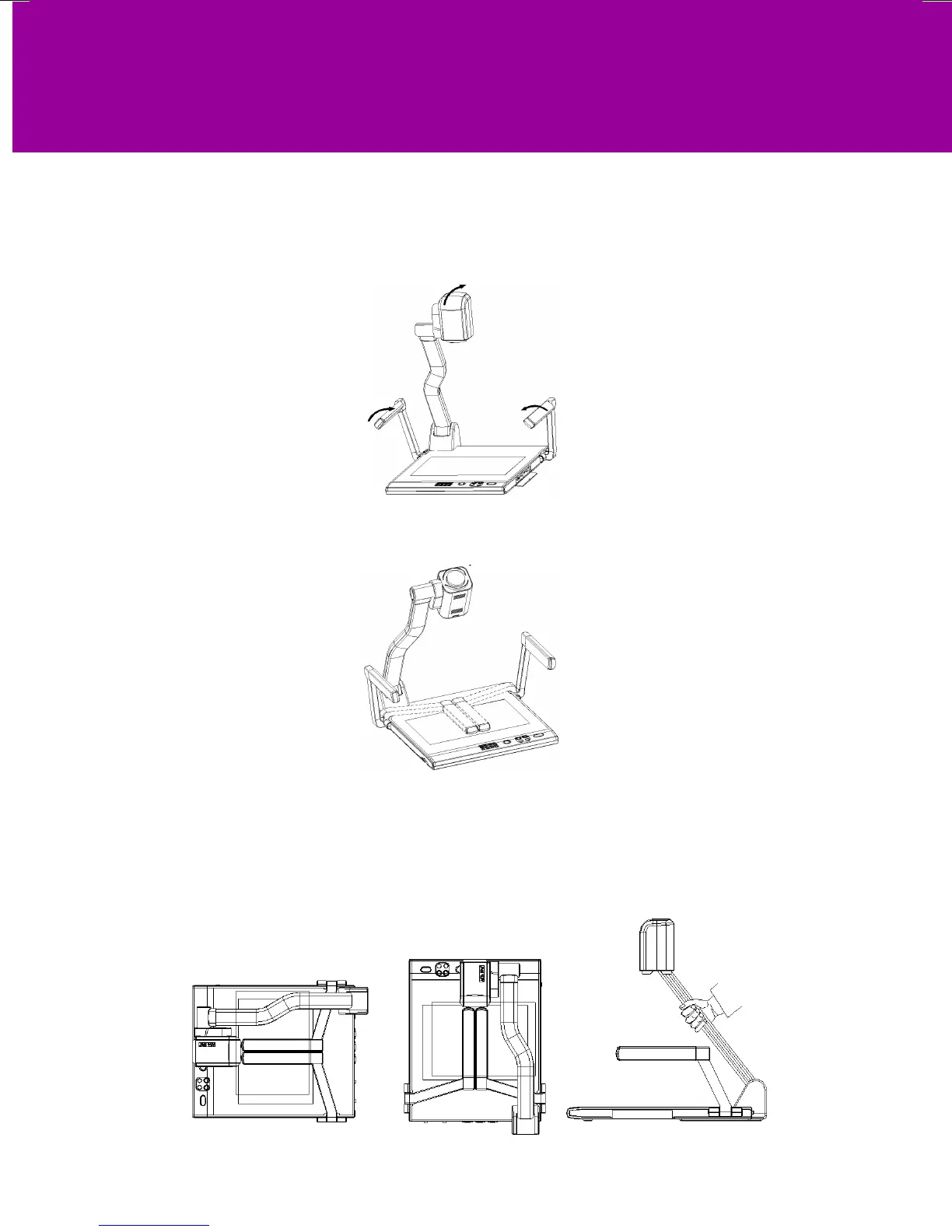 left arm down. Rotate the camera head clockwise until the camera head is parallel to the