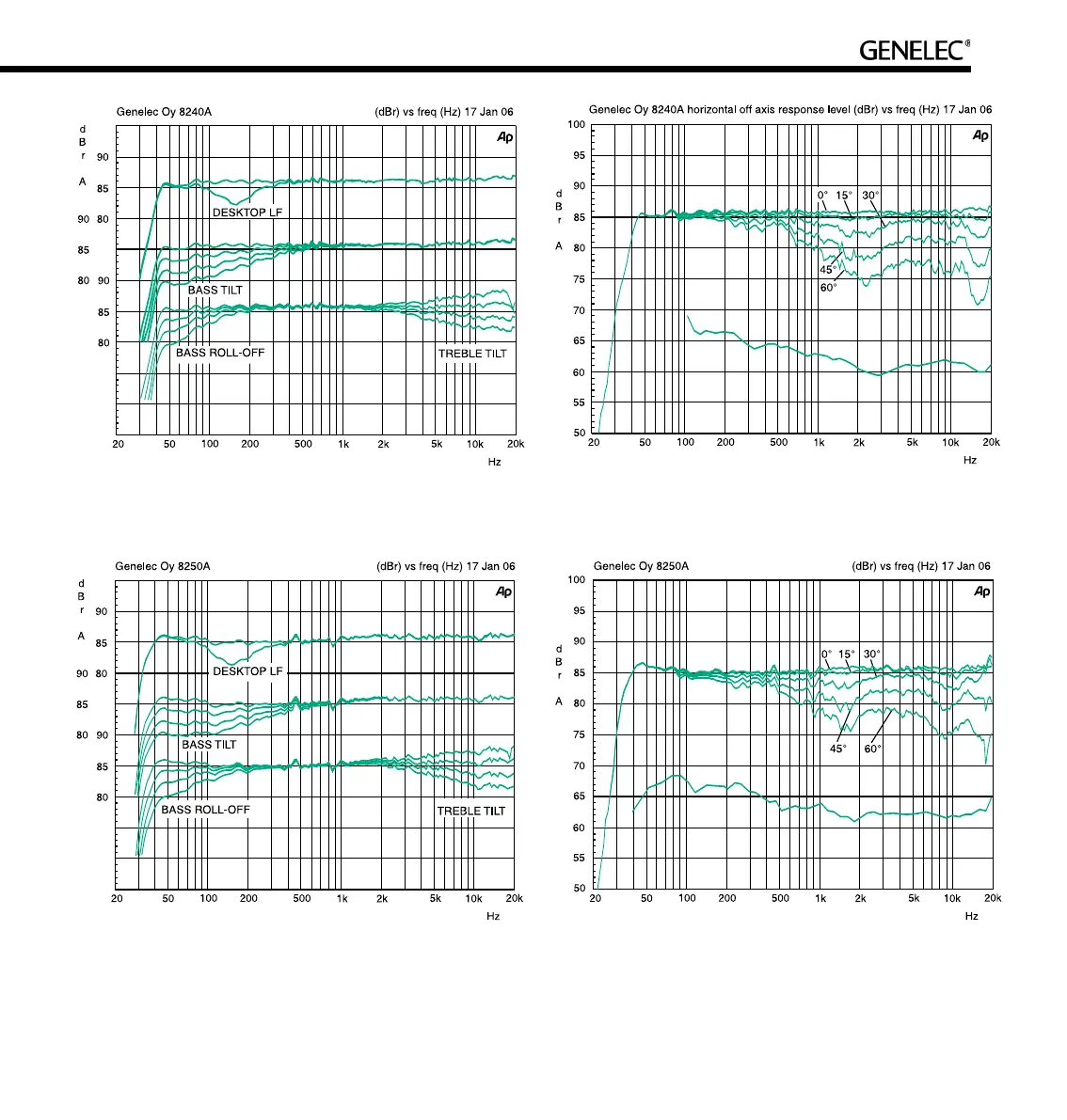 of the 8250A measured at 1 m. The lower curve shows the system's