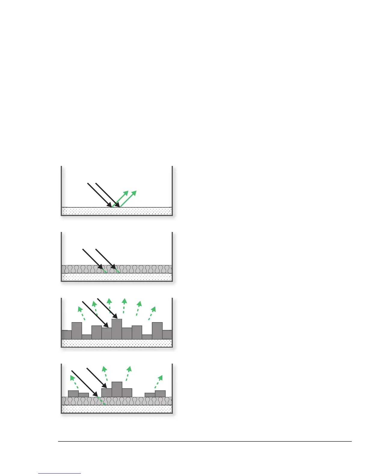 Wall surfaces, ceilings and oors can be reective, diusive or absorptive.