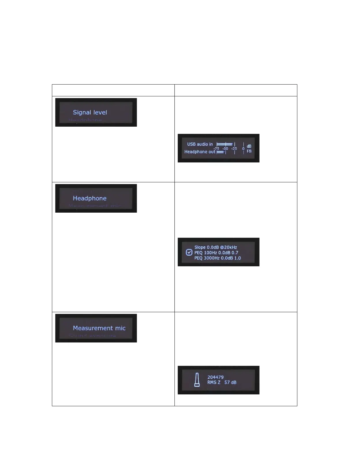 Headphone menu contains a submenu with