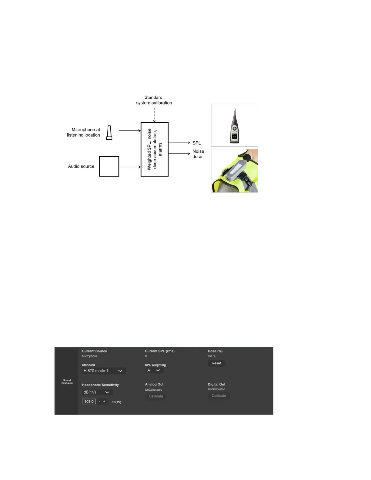 The audio signal for the sound level and noise dose measurements can come from the measurement