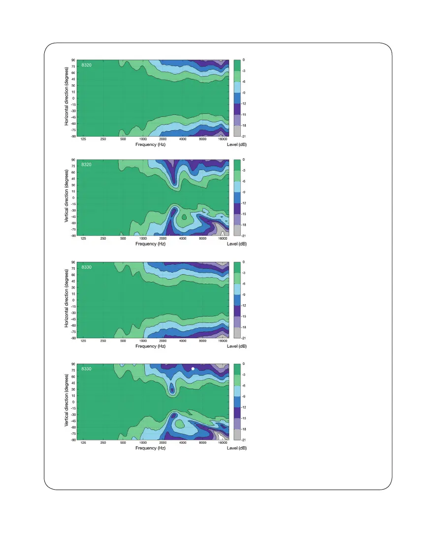 Figure 4: Horizontal and vertical directivity plots of the 8320A and 8330A.