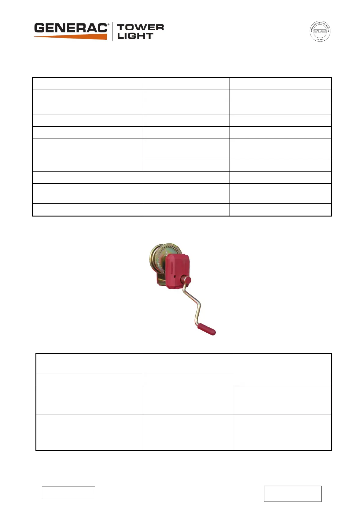 Generac Mobile TOWER LIGHT VT-evo - Cavo DI Salita E Discesa Palo - Raising and Lowering Rope; ARGANO MANUALE 900 Kg - 900 Kg MANUAL WINCH
