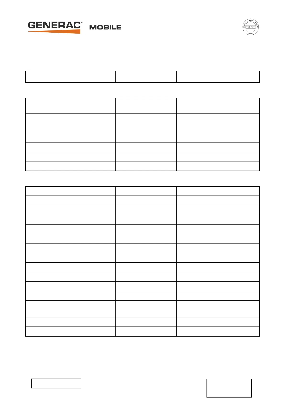 Generac Mobile V20 - Technical Specifications; Alternator Specifications; Generator Specifications; Engine Specifications