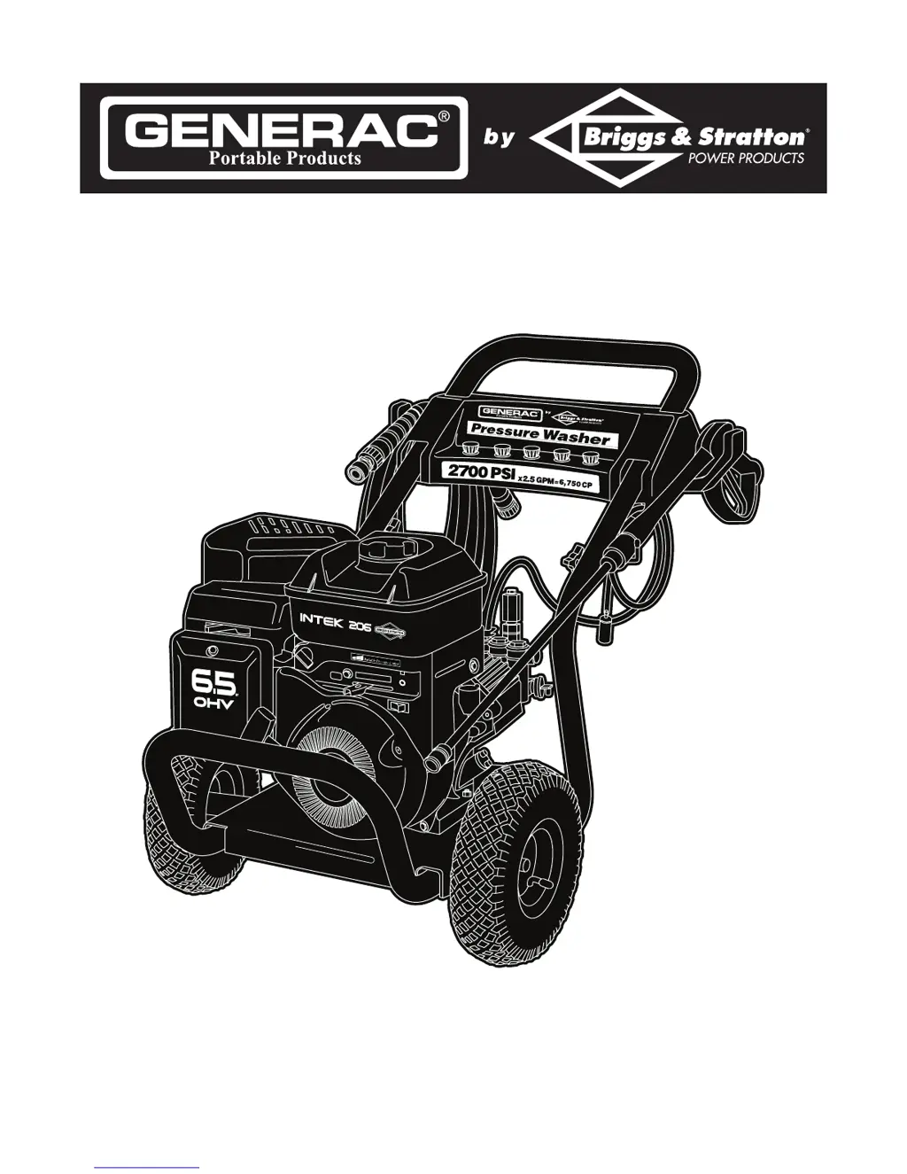 If your Generac Portable Products Pressure Washer pump isn't producing pressure, has erratic pressure, chatters, loses pressure, or has low water volume, several issues could be the cause. First, ensure you're using a high-pressure spray tip, and replace it if a low-pressure one is installed. Check for and clear any blockages in the water inlet. Make sure the water supply is adequate. Inspect the inlet hose for kinks or leaks, straightening it or patching any leaks. Clean the inlet hose strainer if it's clogged. Ensure the water supply isn't over 100°F, and clear any blockages in the high-pressure hose. If the gun leaks, replace it. Clean the nozzle if it's obstructed. If none of these steps resolve the issue, the pump may be faulty, and you should contact a Generac service facility.