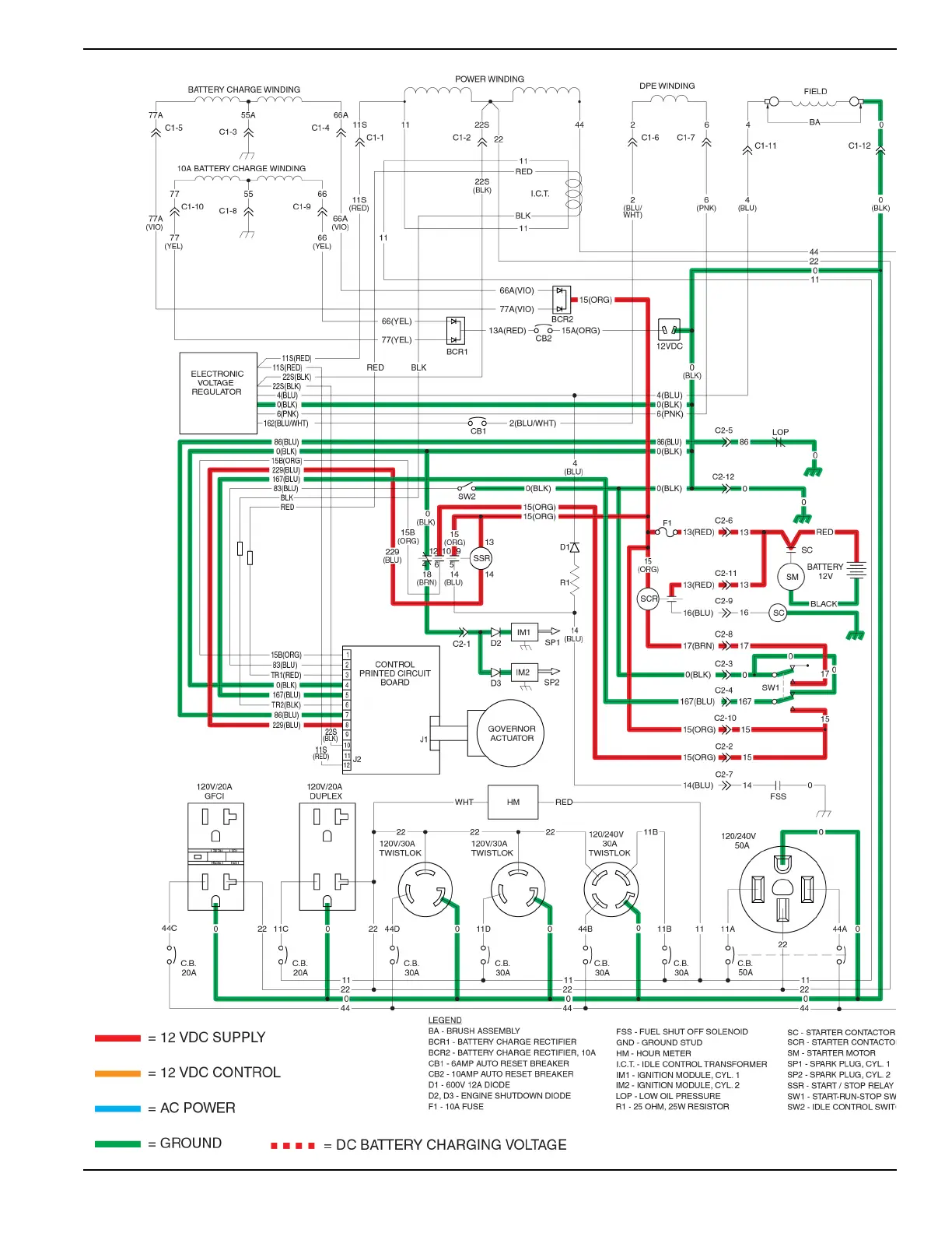 Generac Power Systems 5735 - Problem 2 - Generator Produces Zero Voltage or Residual Voltage (2-12 VAC) (continued); Problem 3 - Excessive Voltage;Frequency Droop When Load is Applied; Problem 4 - No Battery Charge Output