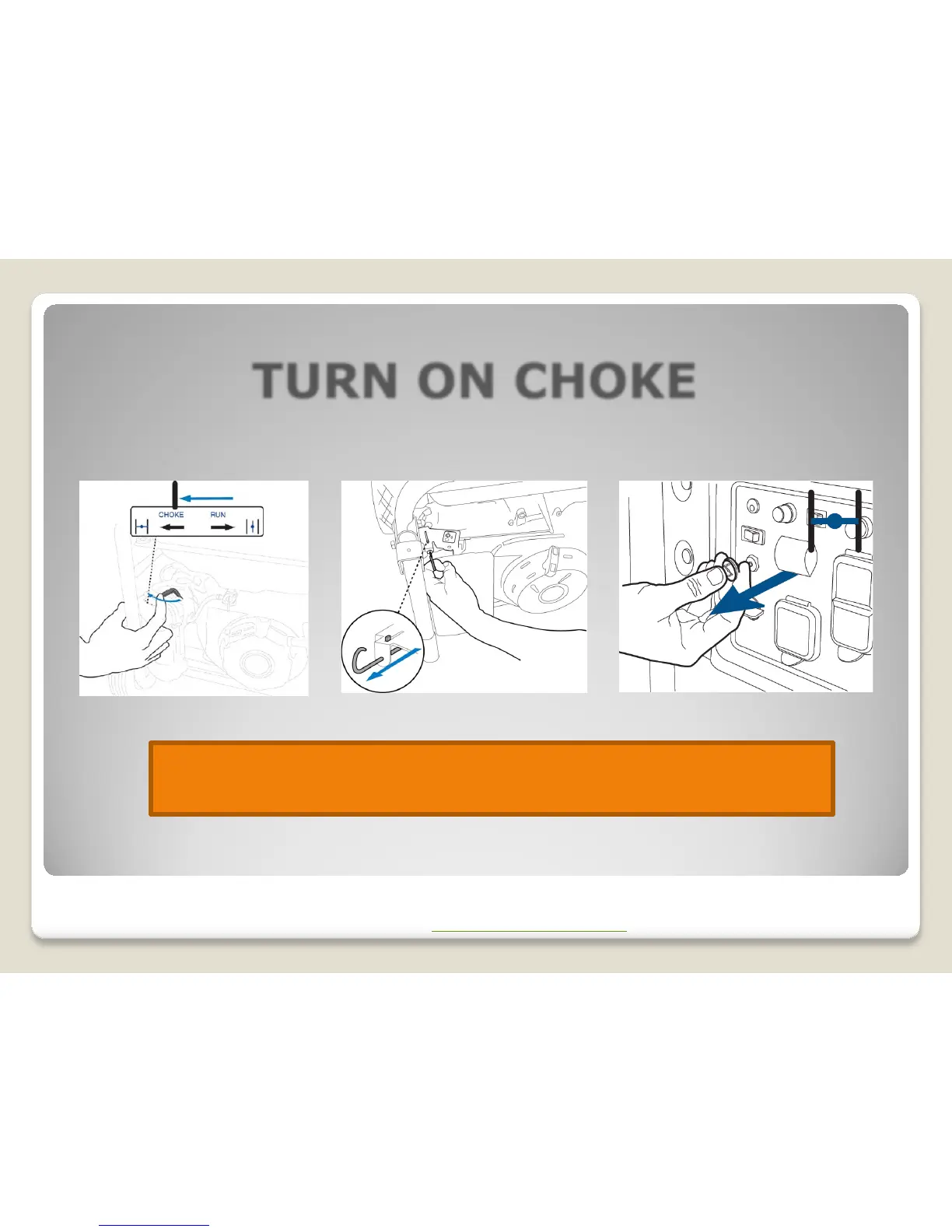 CHOKE IS LOCATED ON ENGINE OR CONTROL PANEL.