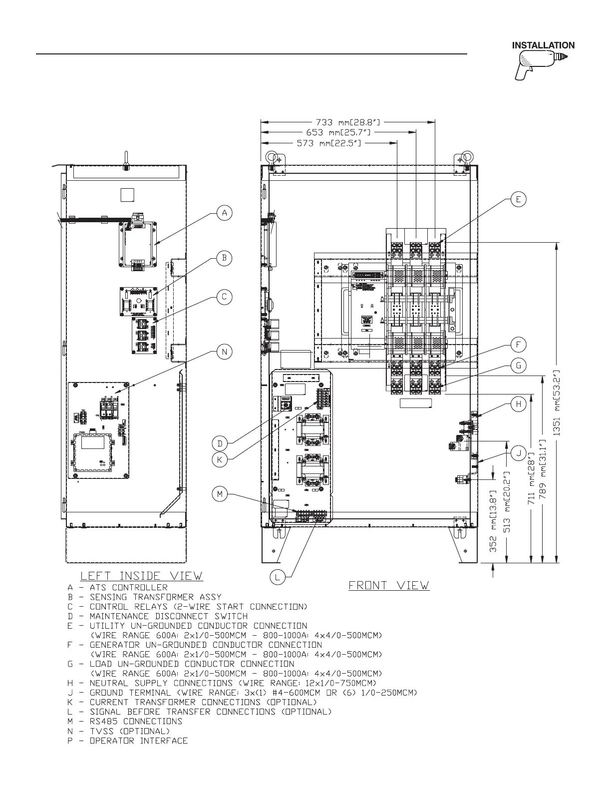 Section 6 — Mounting Dimensions (600 - 1000A, NEMA 12)