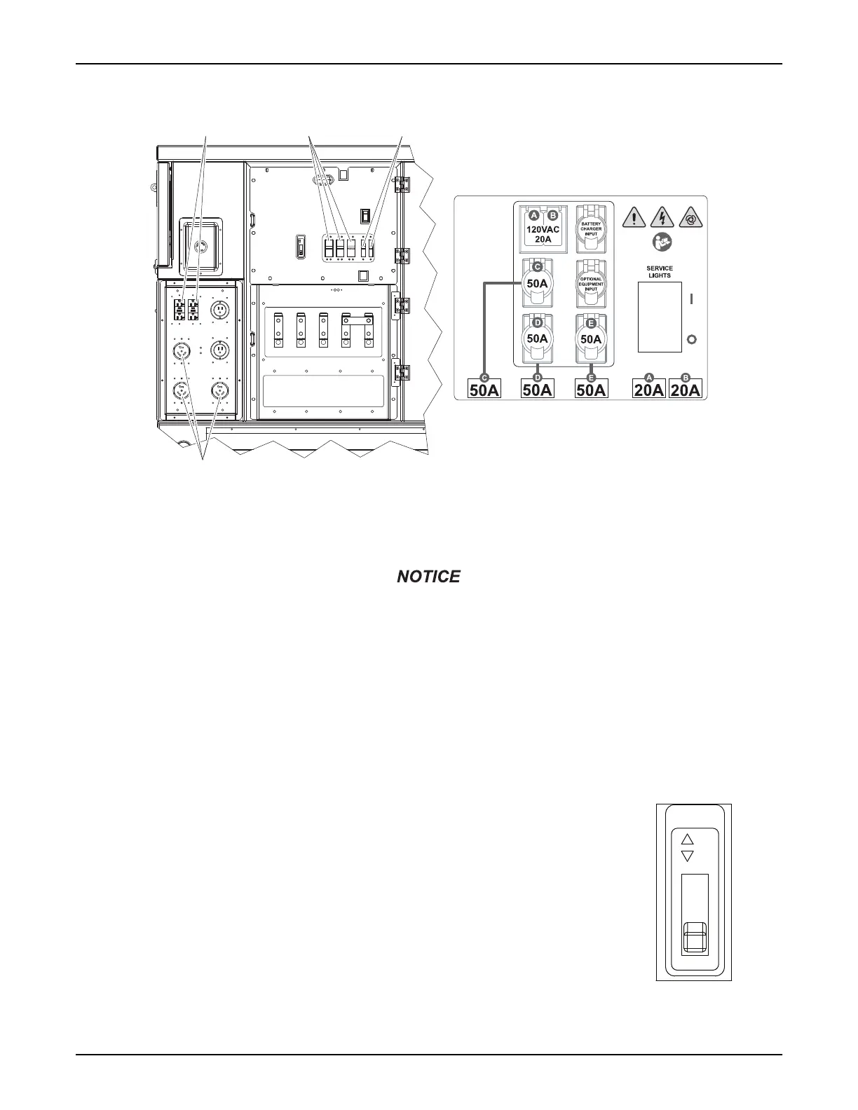 Power to the receptacles is available any time the generator is running, EVEN IF THE MAIN