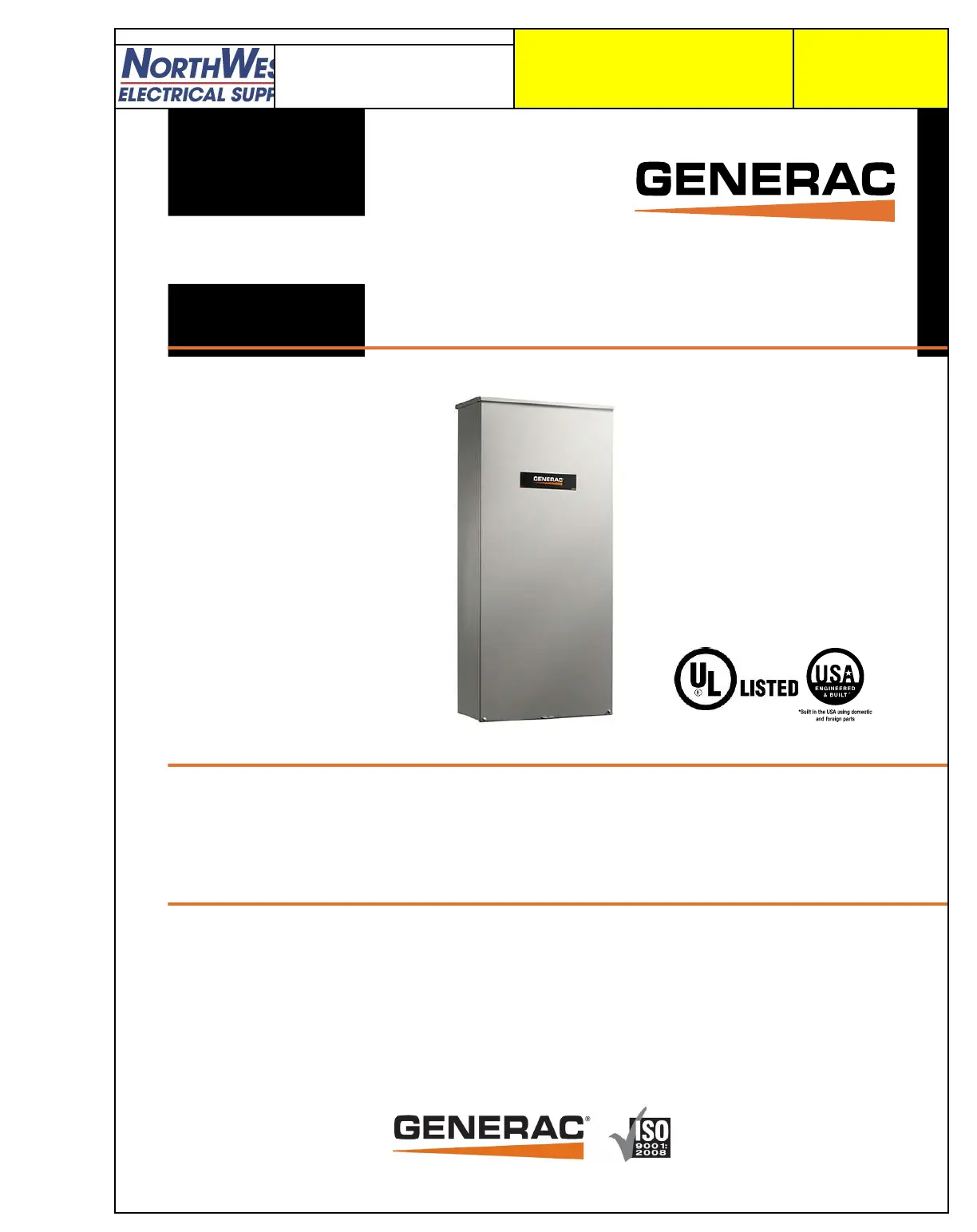 Service rated (RTSW) Generac Automatic Transfer Switches are housed in an aluminum NEMA/UL Type 3R enclosure, with