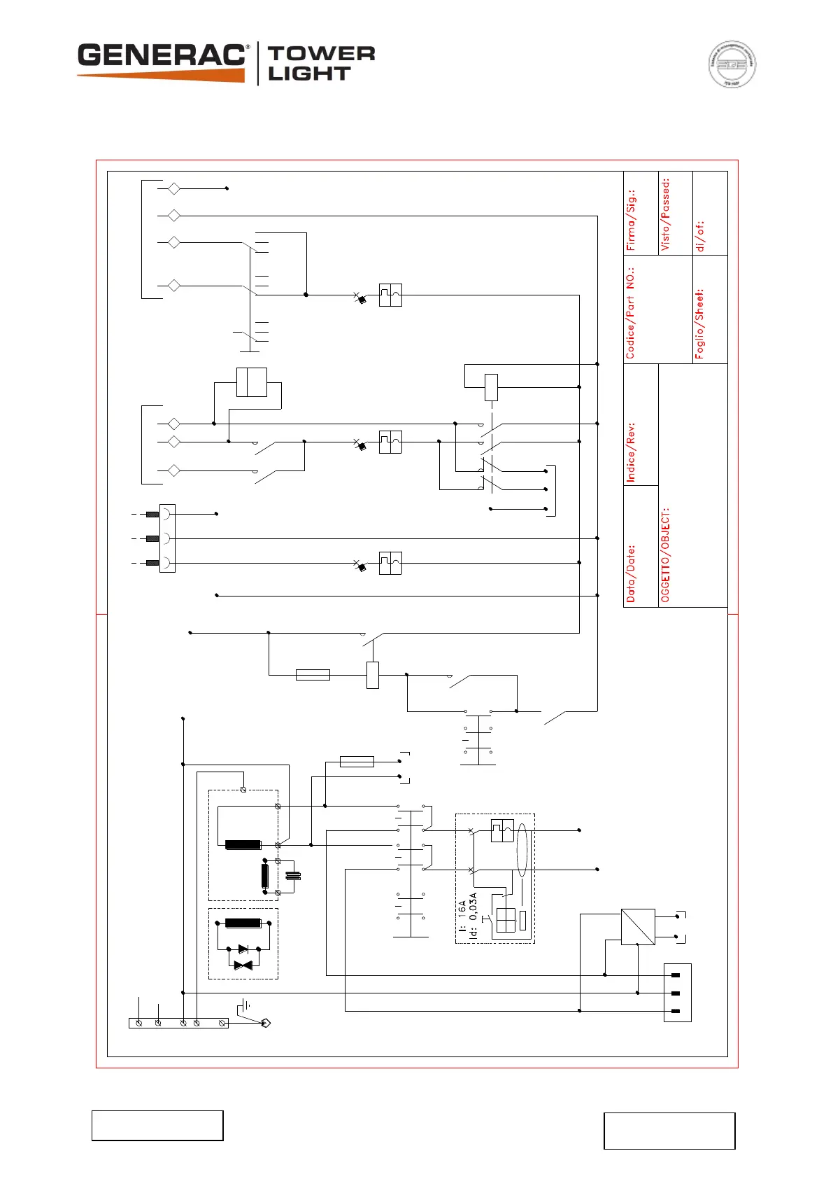 K1, K2, KL: LEDs contactor 16A Ith; coil 12Vdc;