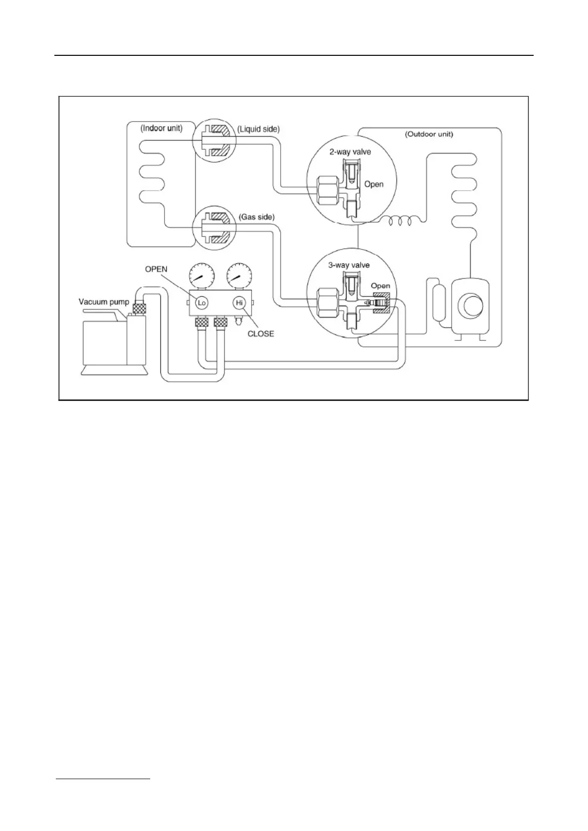 3. Close the valve (Low side) on the charge set, turn off the vacuum pump, and confirm that the gauge needle does not move