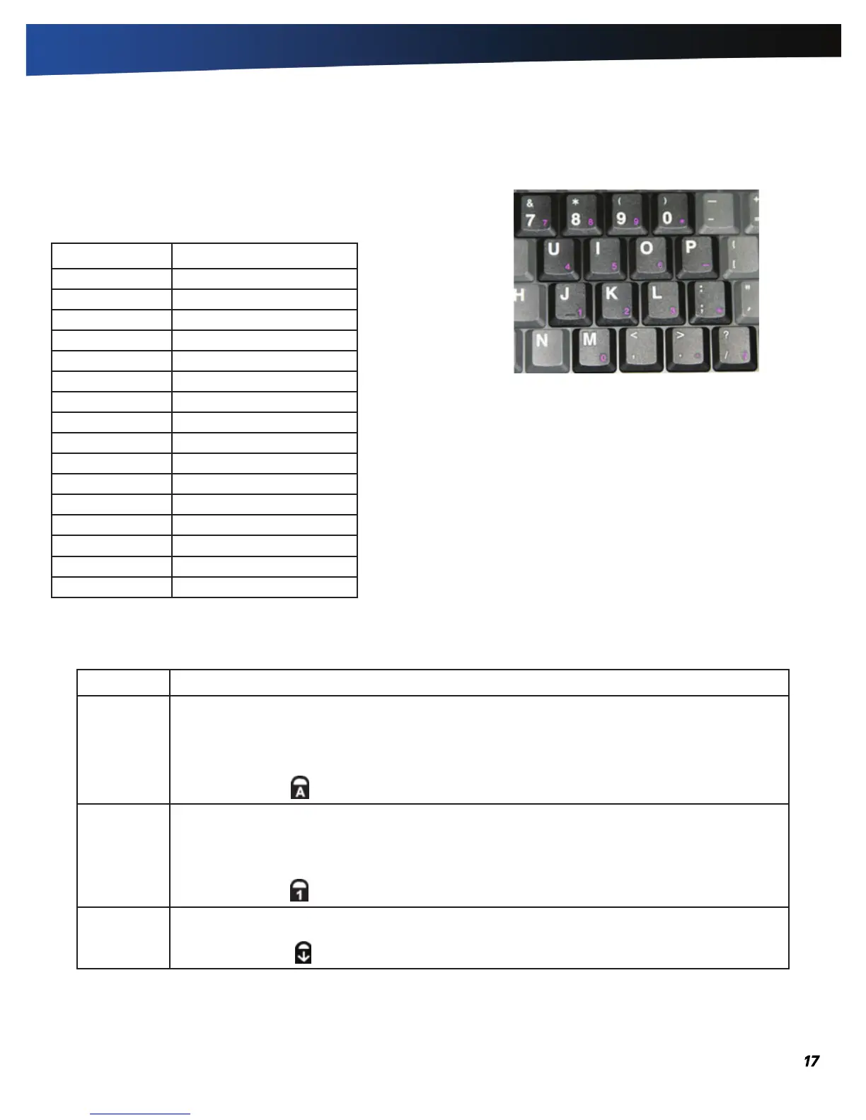Num Lock When Num Lock is on, the embedded keypad is in numeric mode. The keys function as a calcula-