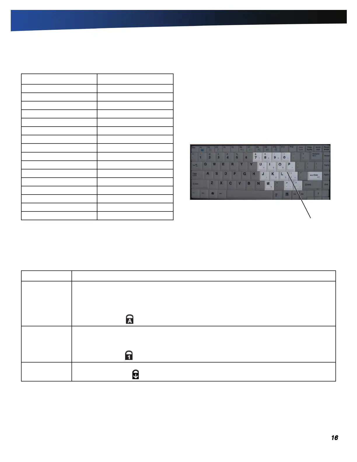 The embedded numeric keypad consists of sixteen keys