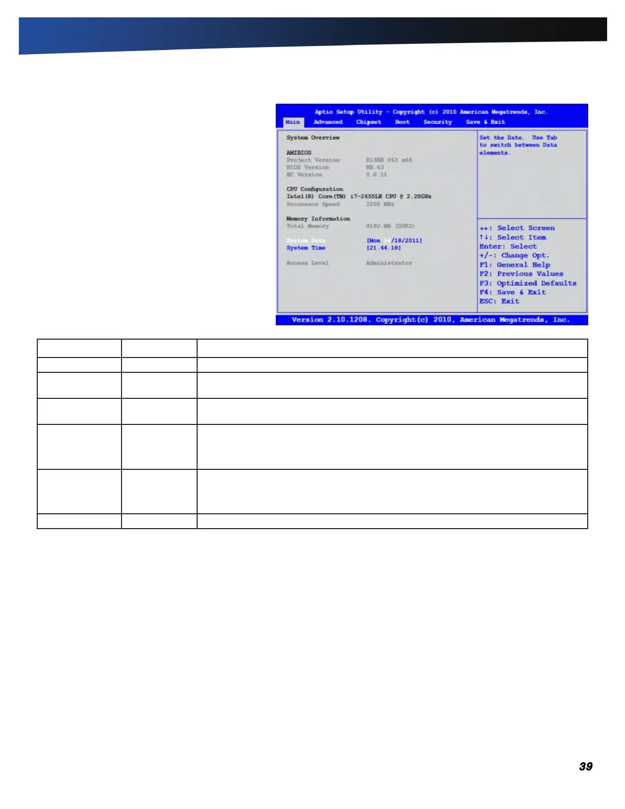 System Date MM/DD/YYYY Use this field to set the date. The date can be set from January 1, 1980 to December 31,