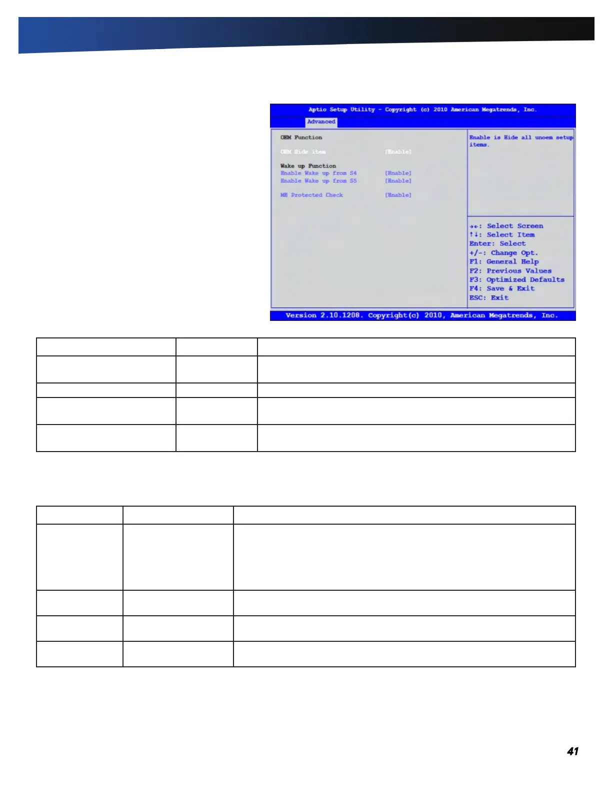 Wake up Function Enables or Disables the S4 or S5 Wake up function.