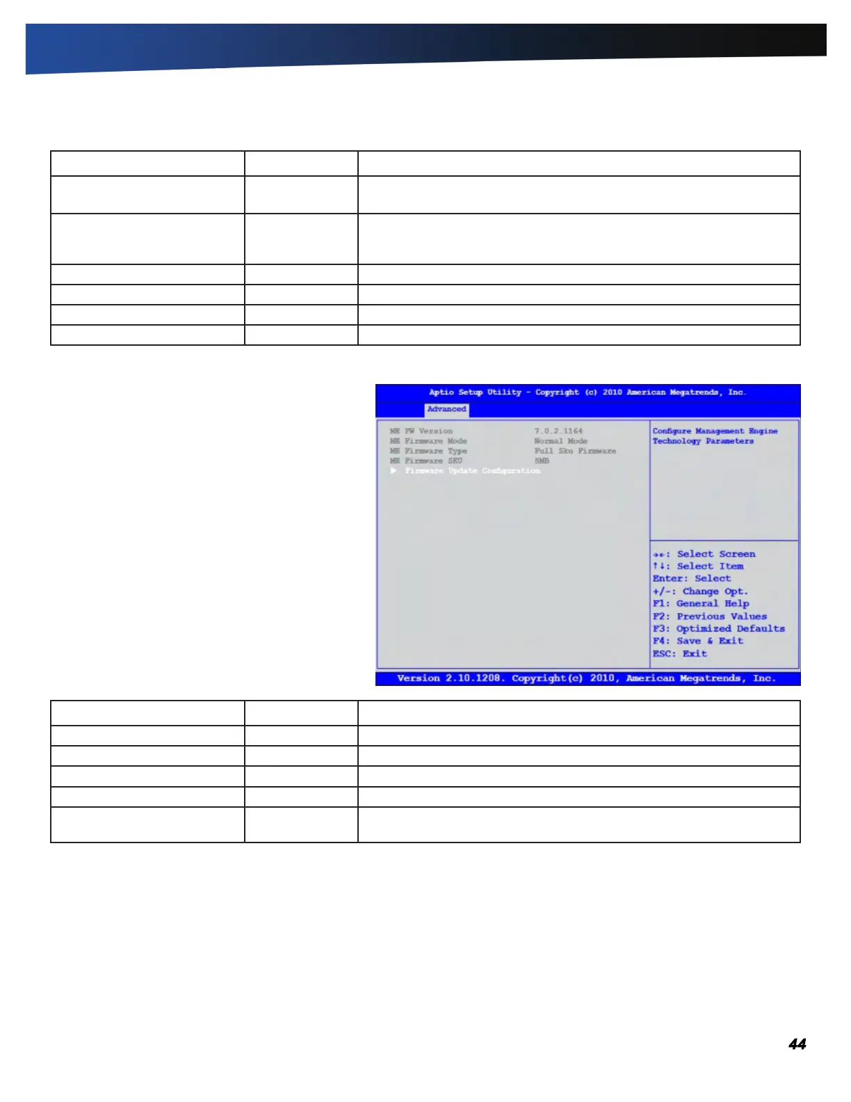 ME FW Version None Displays the Firmware Version