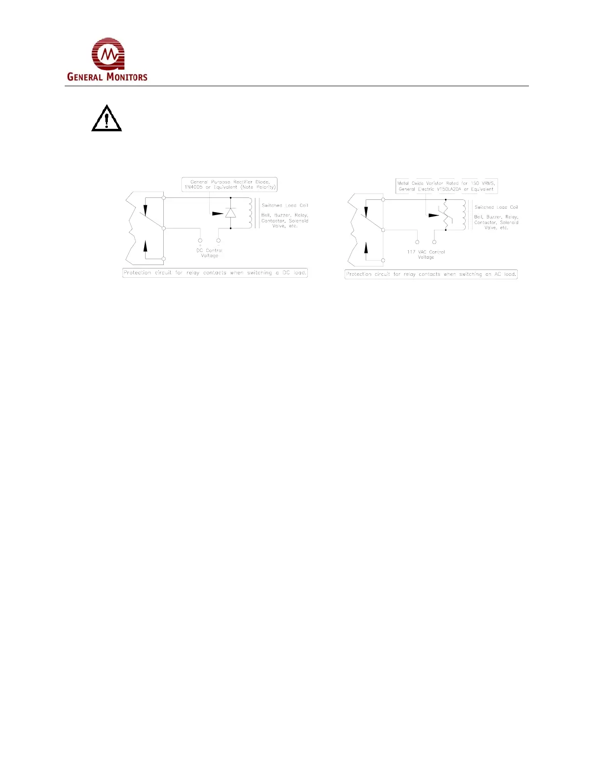CAUTION: Inductive loads, such as bells, buzzers, relays contactors solenoid valves,