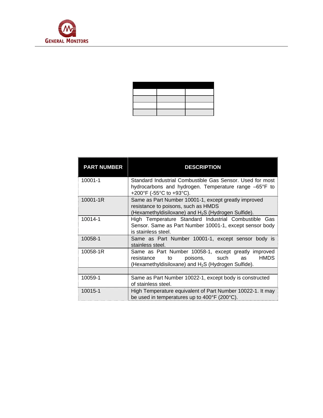 10058-1 Same as Part Number 10001-1, except sensor body is