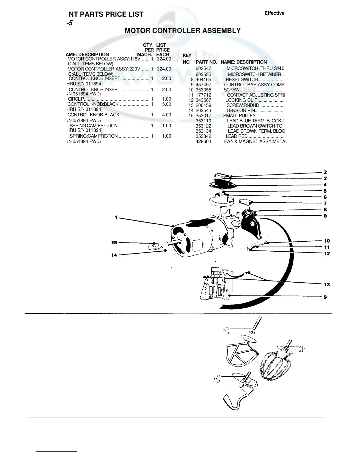 602547 MICROSWITCH (THRU S/N 011894) ..... 1