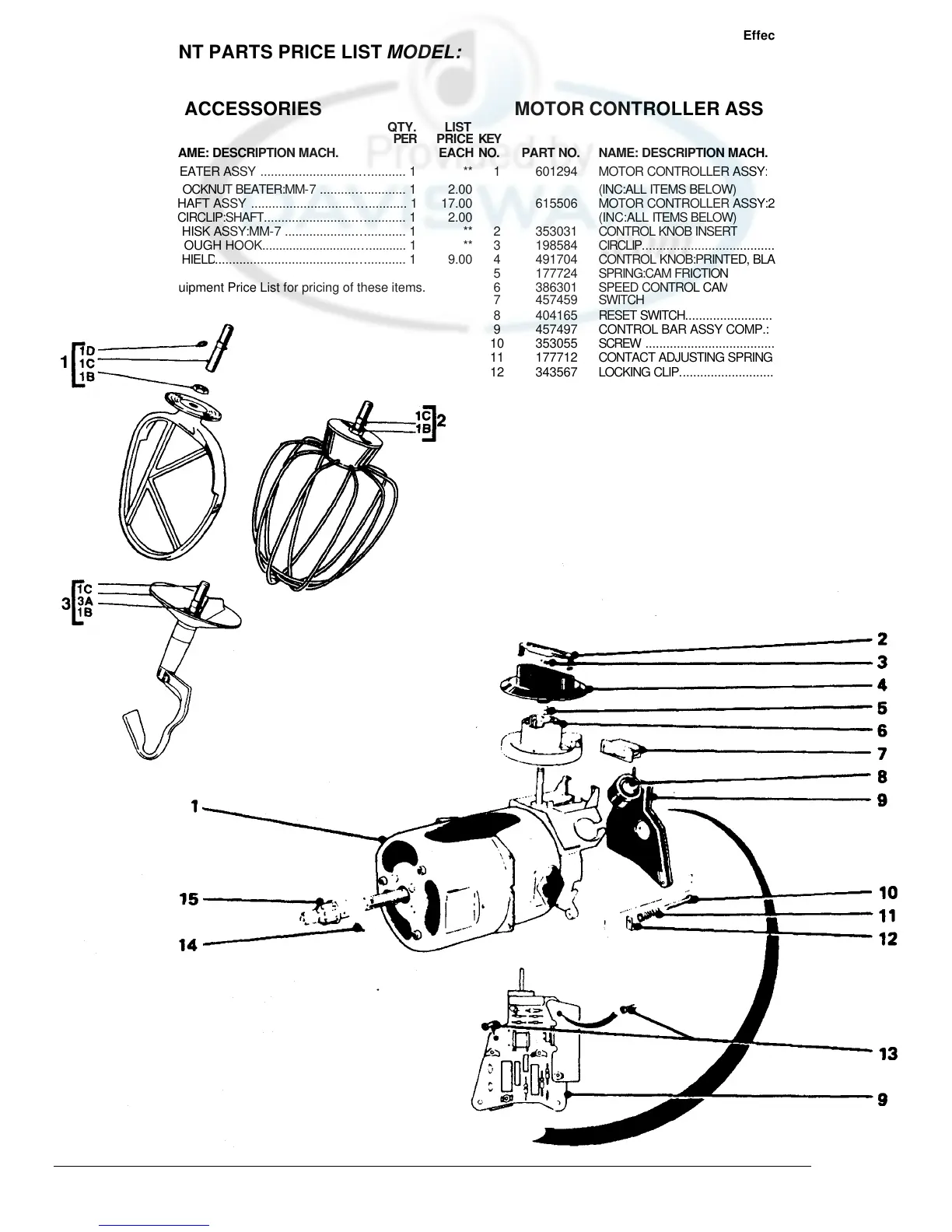 REPLACEMENT PARTS PRICE LIST MODEL: