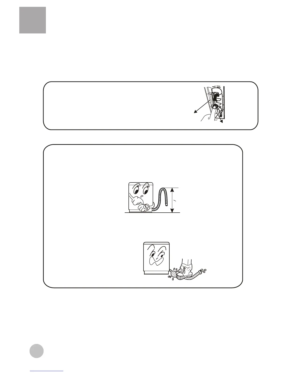 2.Do not step on or press the drain hose.