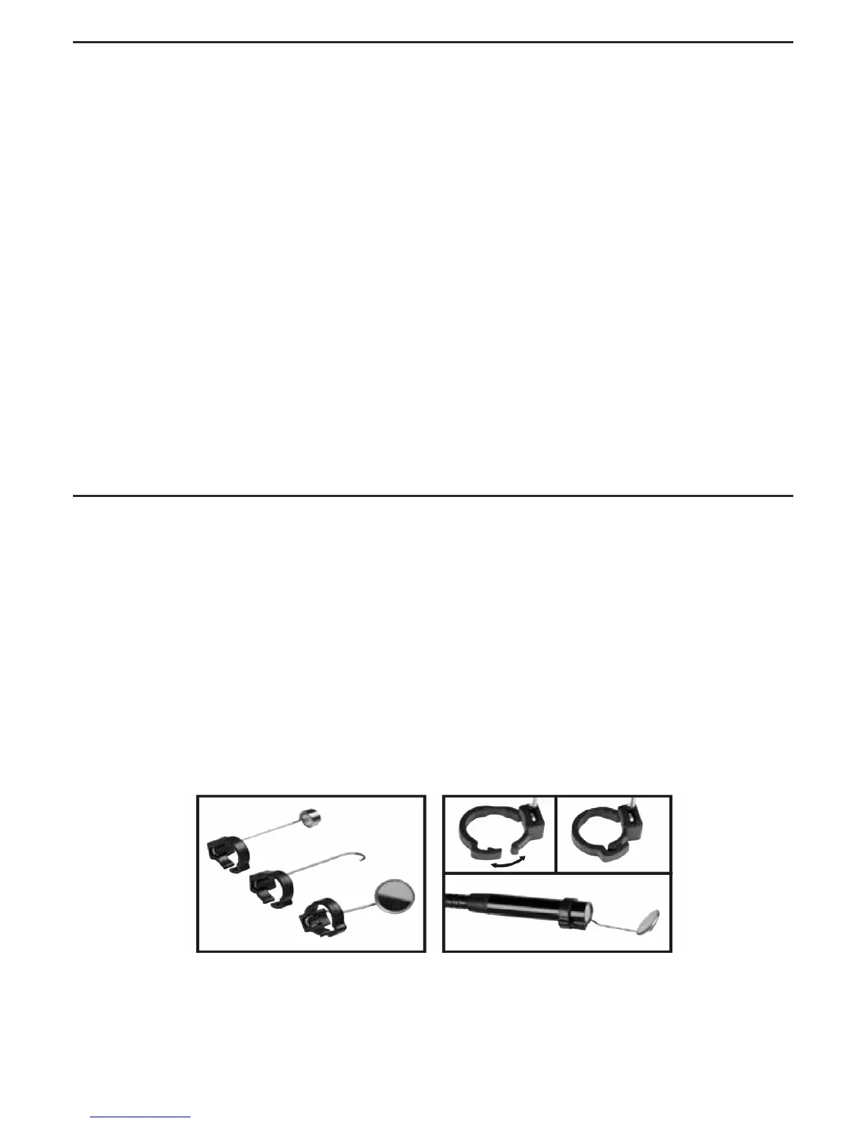 the camera-tipped end of the probe. Each accessory has a specific purpose: