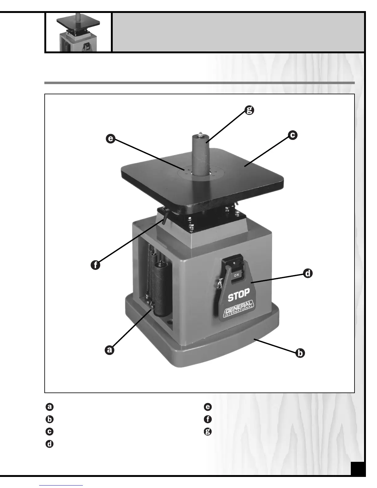 General 15-220 - Identification of Main Parts and Components; Sanding Spindle