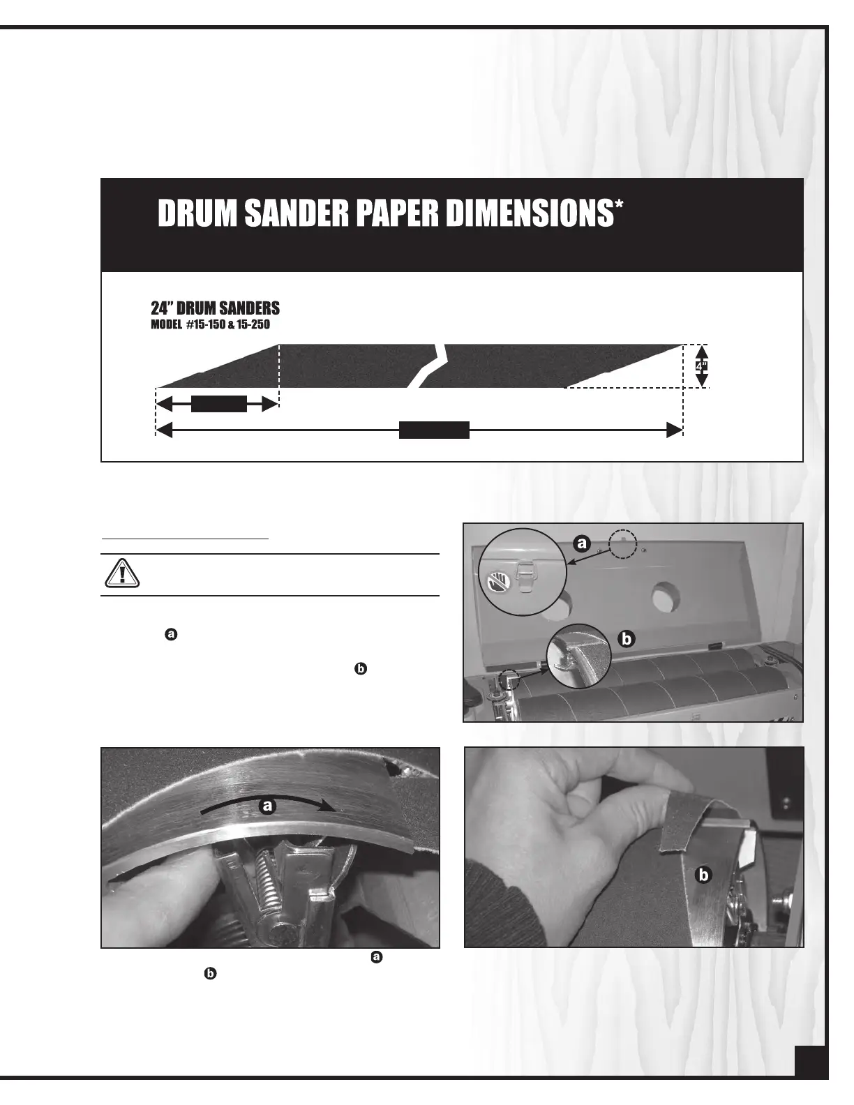 Tip: Cleaning the sand paper with a belt dresser will extend the life of the sand paper. Consult your local distributor.
