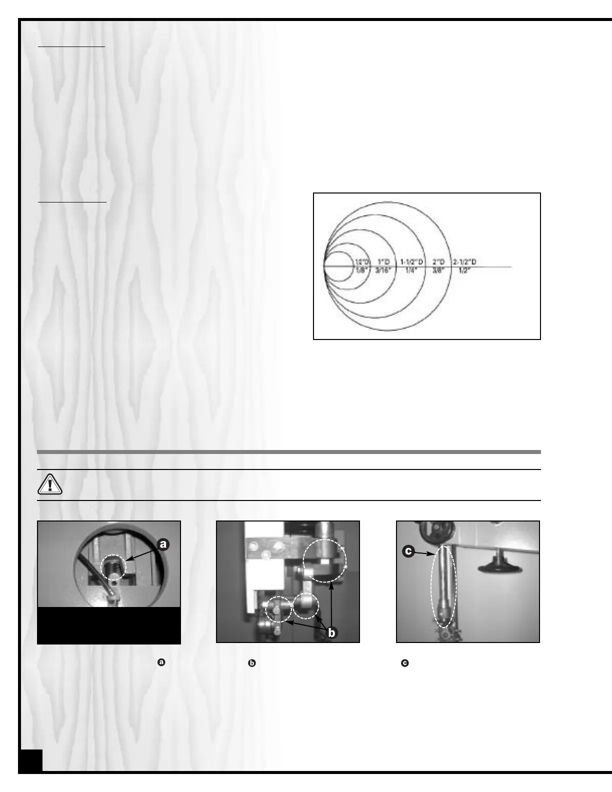 • When changing a cut, do not withdraw the workpiece from the blade. The blade may get drawn off the wheels.