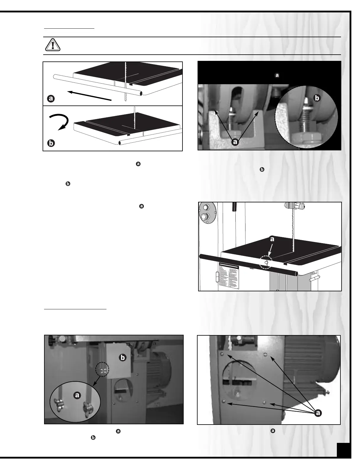 This bandsaw table is heavy. Do not over-exert. The help of an assistant will be needed for the following step.