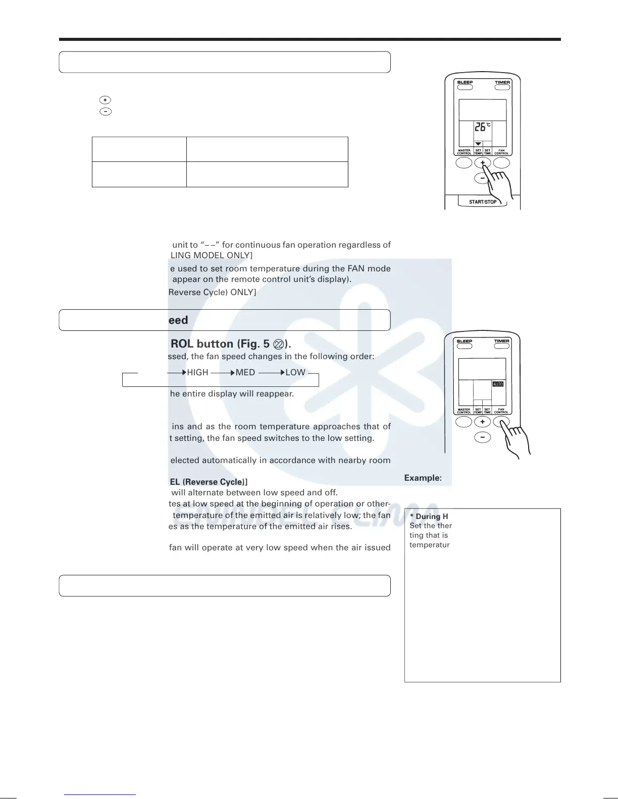 * Heating : The fan operates at low speed at the beginning of operation or other-