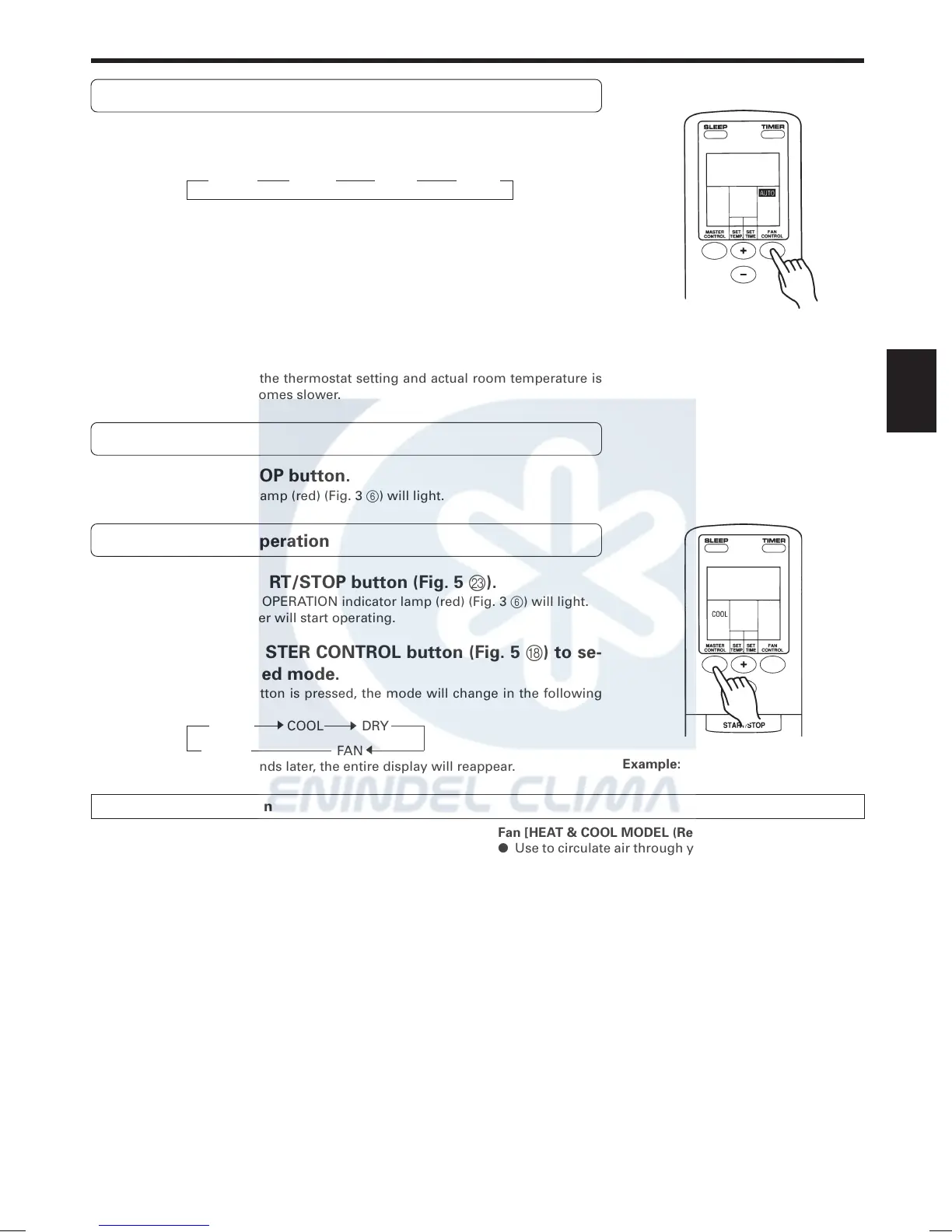 The indoor unit’s OPERATION indicator lamp (red) (Fig. 3 6) will light.