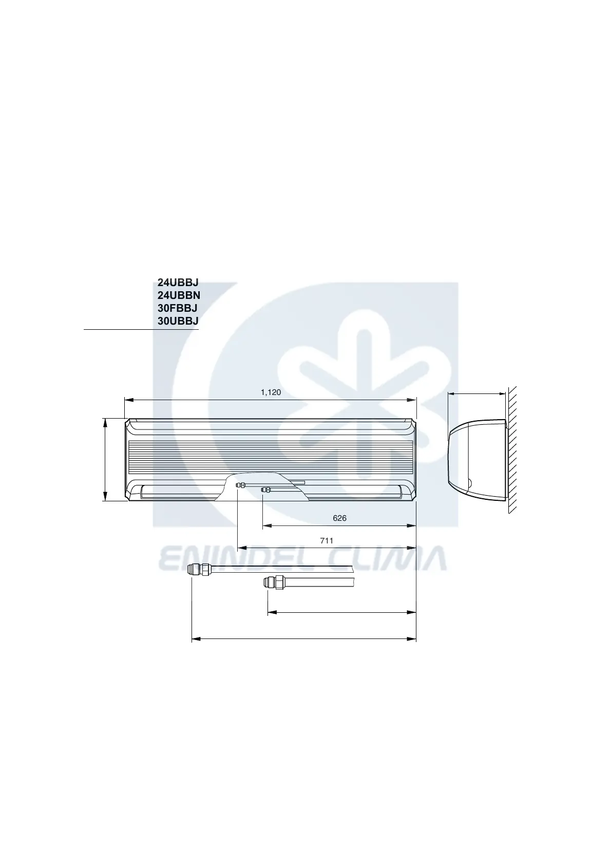 General AOG24FNBN - Outline and Dimensions; Indoor Unit Dimensions