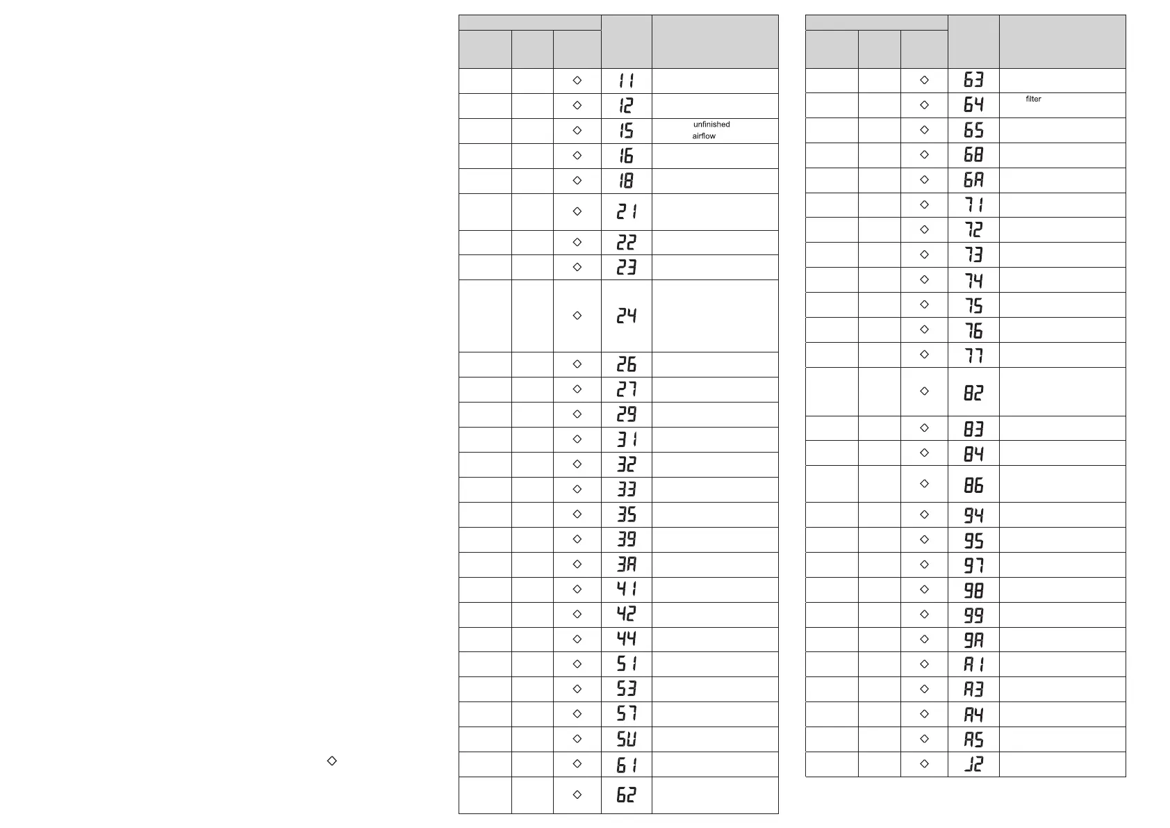 error codes will appear on the remote control display.