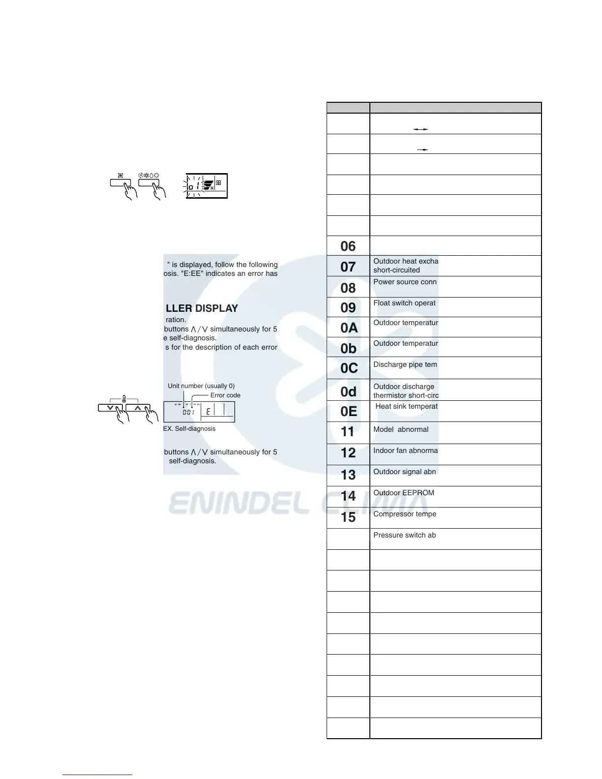 items to perform the self-diagnosis. "E:EE" indicates an error has