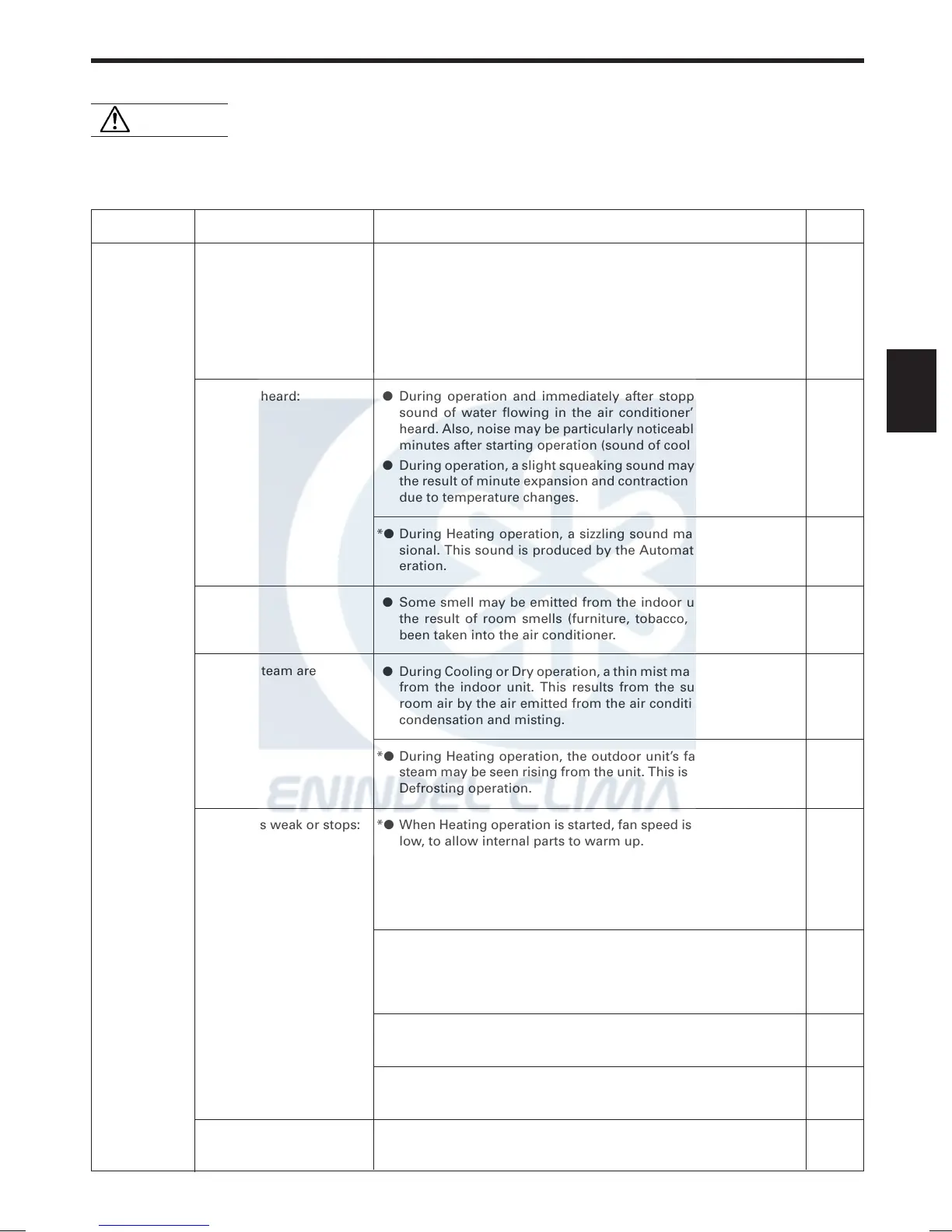 ● During Cooling or Dry operation, a thin mist may be seen emitted