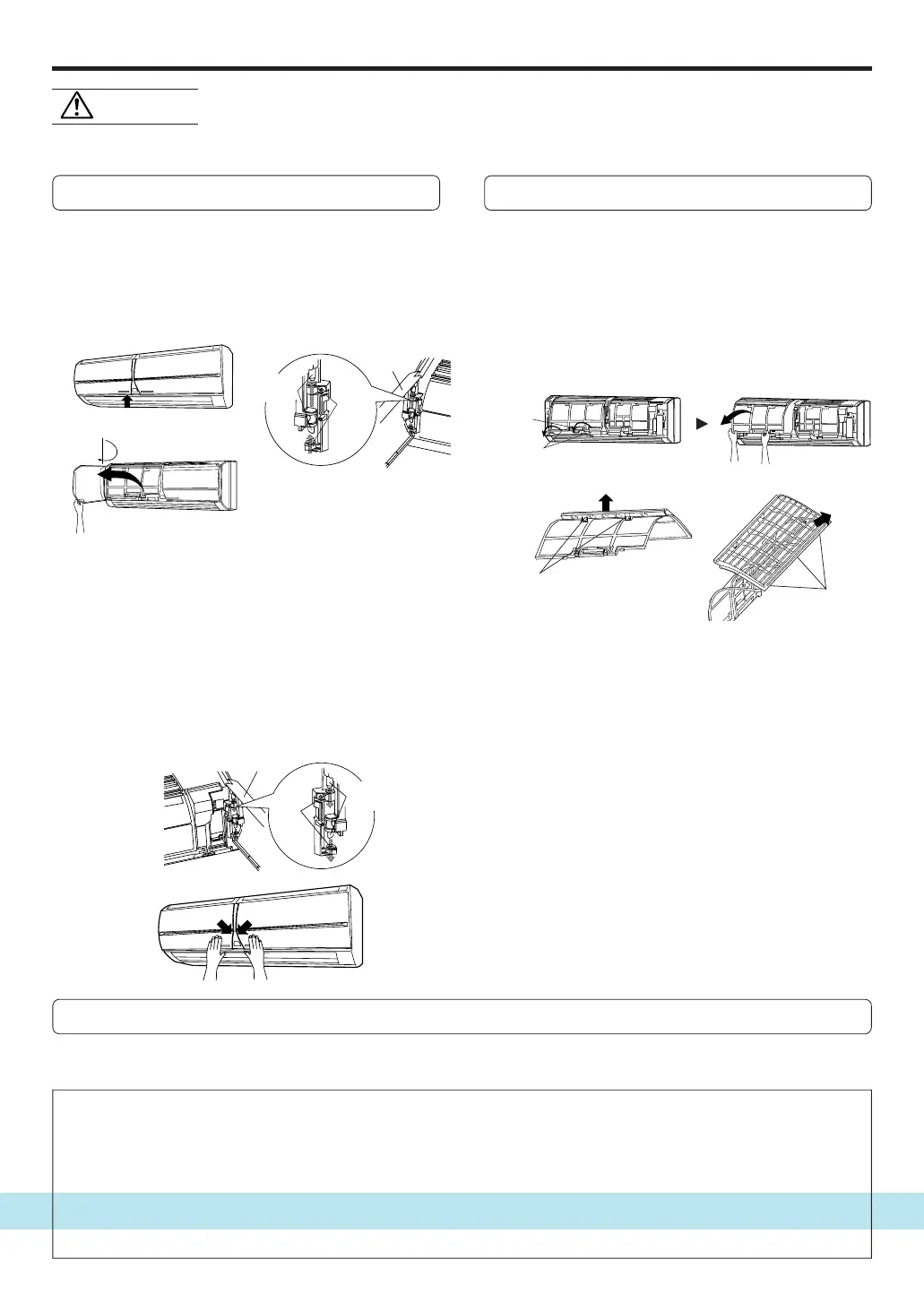 ● Before cleaning the air conditioner, be sure to turn it off and disconnect the Power Supply Cord.