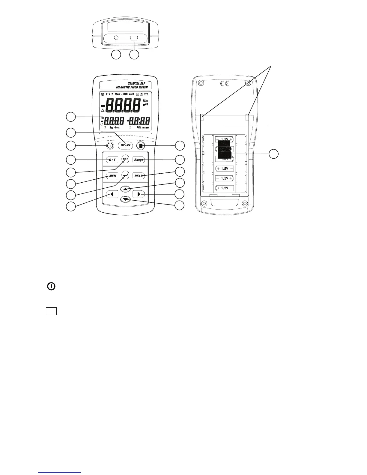 (Power) button. Press and hold for at least 3 seconds to power meter