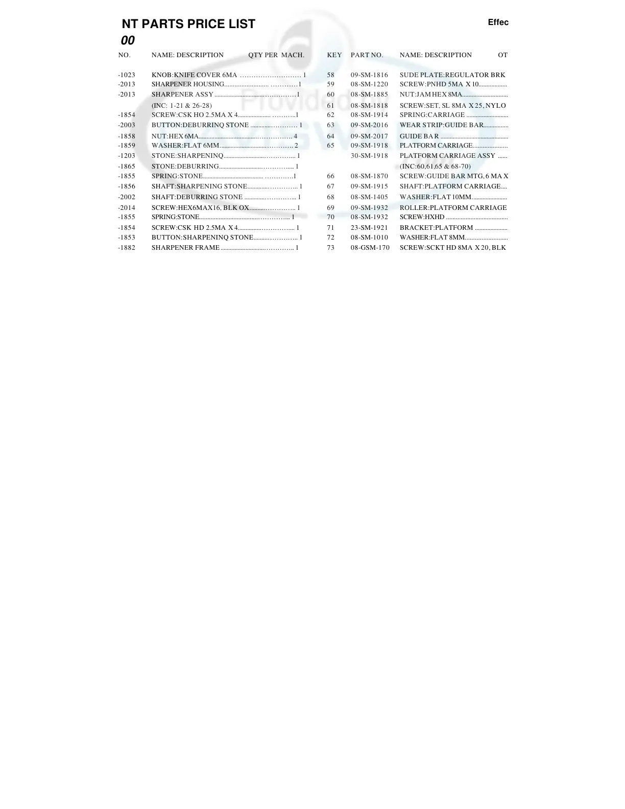 30-SM-2015 SHARPENER FRAME ASSY ................………….. 1