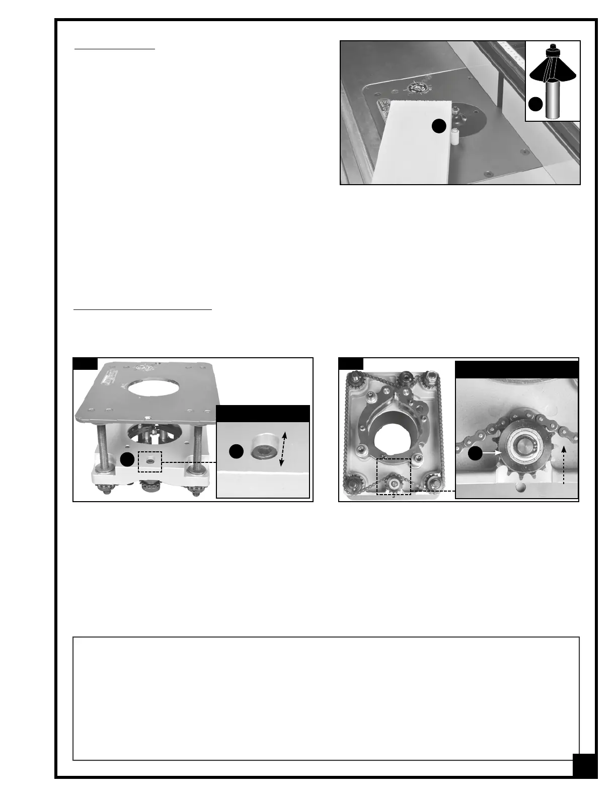 Proper tension on the drive chain helps maintain tool bit height in the lift without the need for a locking mechanism.
