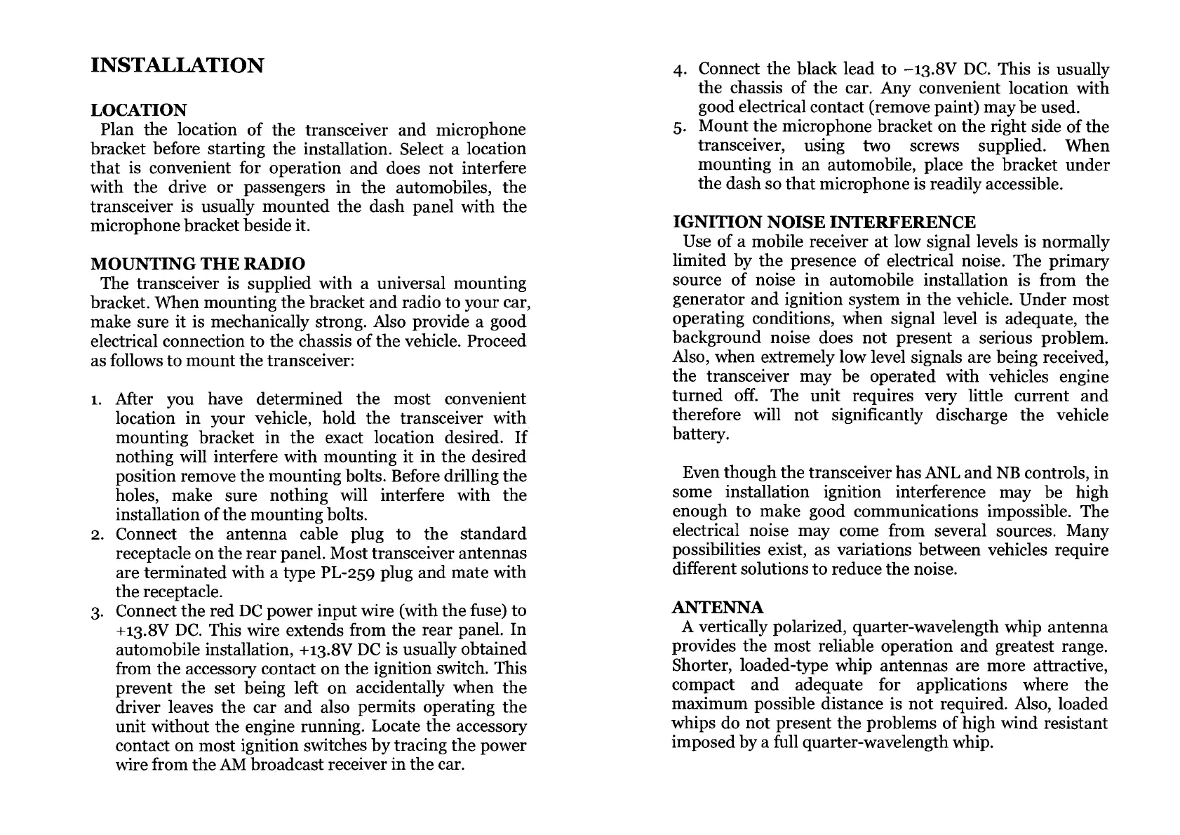 receptacle on the rear panel. Most transceiver antennas