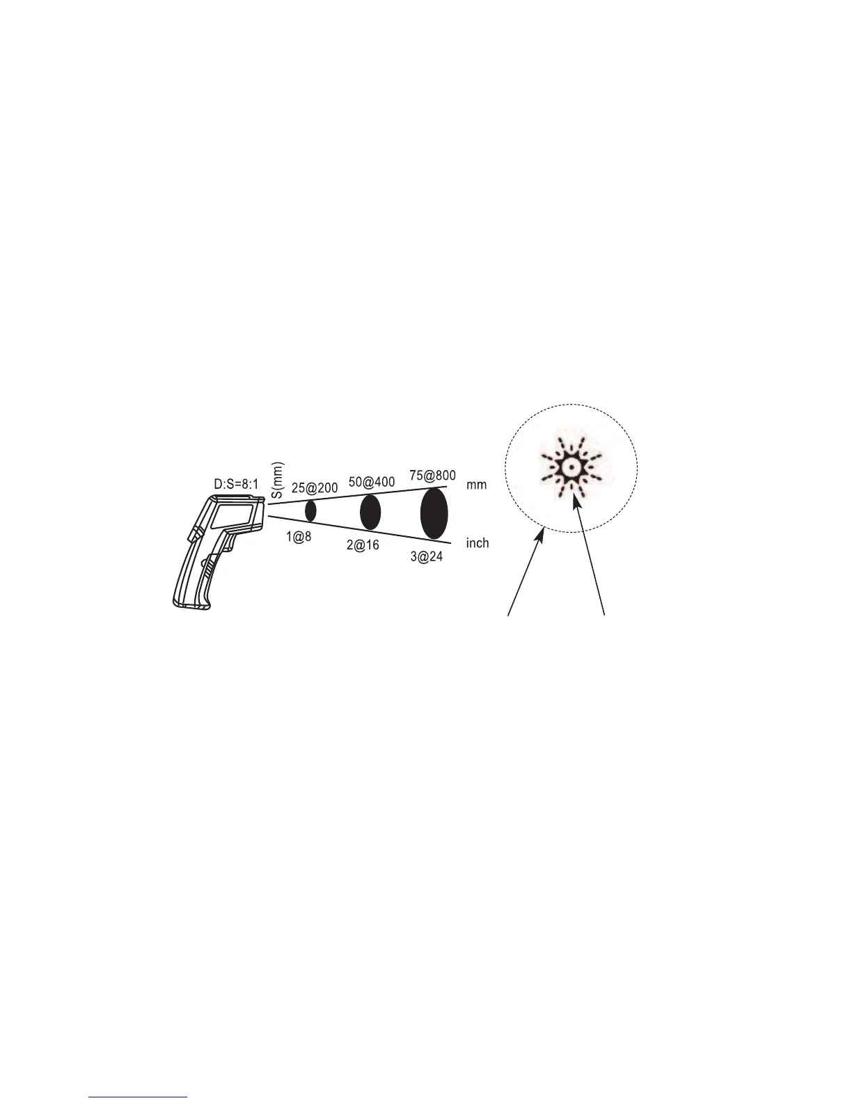 distance/point de 8:1. Par conséquent, 8 pouces est la distance optimale
